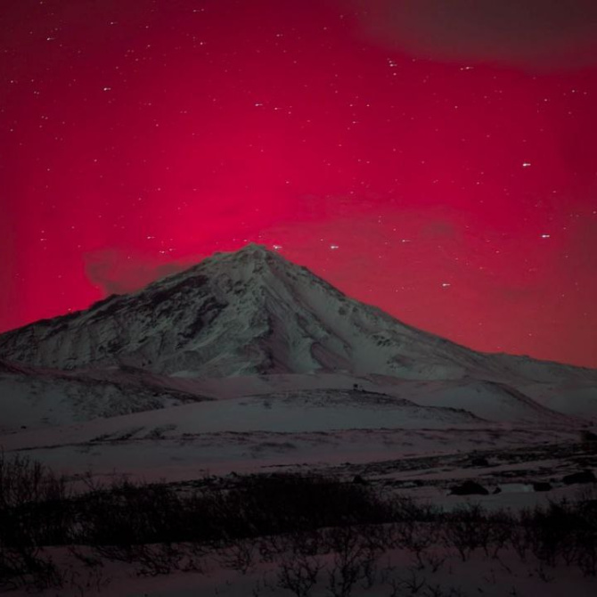 Как можно заметить, цвет сияния может быть разным. Где-то видят зеленые сполохи, а в прошлый вечер наше небо озарилось ярким красным заревом.