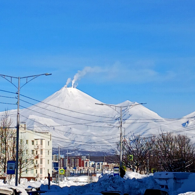 Над Авачей поднялись отчетливые столбы пара, напоминая о непрерывной активности домашнего вулкана.