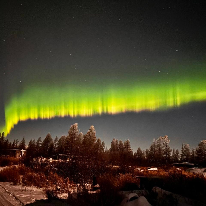 Северное сияние потому и называют "полярным", что наблюдается оно в полярных регионах, а это в нашем случае над 66° широты.