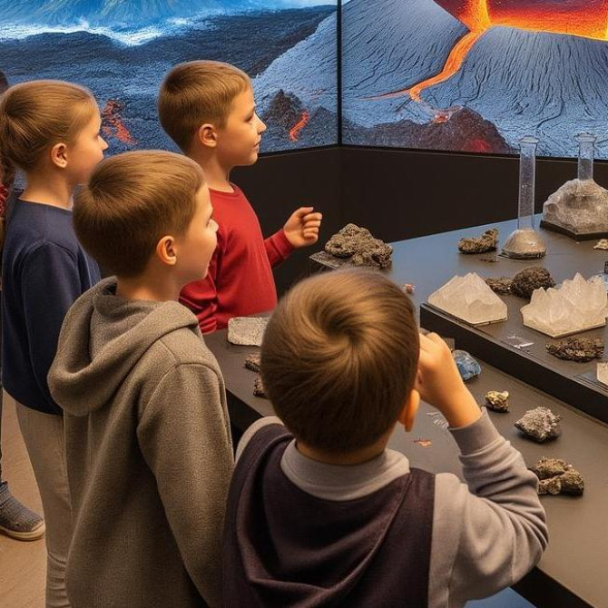 Ребята знакомились с уникальной вулканической деятельностью региона и узнавали о роли вулканов в истории Земли. В ходе экскурсии дети знакомились с минералами, вулканическими породам, изучали макеты действующих вулканов и заглядывали внутрь вулканической постройки.